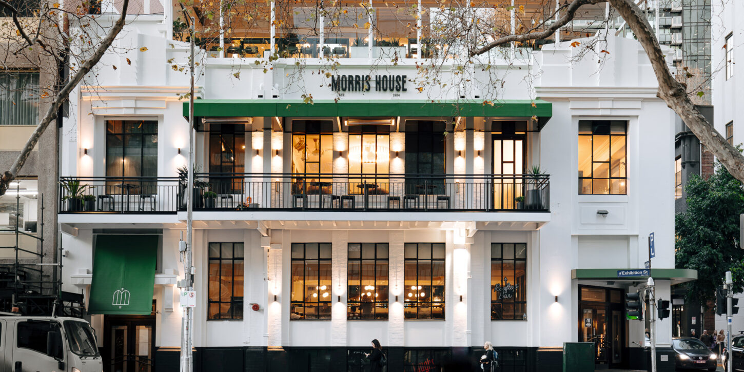 Sitting on the corner of Exhibition & Little Collins Street, Morris House fuses Melbourne’s love of the arts, city rooftop views and good food & wine across four levels.