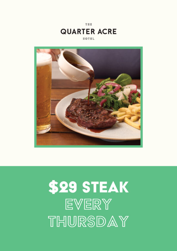 Whether you’re here for a casual drink, a hearty meal, or a memorable celebration, the Quarter Acre Hotel is the perfect setting to unwind, connect, and indulge in the timeless appeal of the quarter-acre dream.