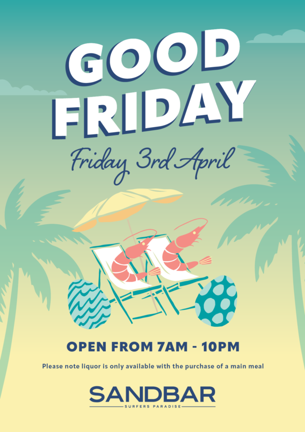 Sandbar wants you to wine, dine and take your time. Relax and let our friendly staff pour you a delicious cocktail, sublime wine or crisp ale from the Gold Coast’s largest range of beers. We focus on offering quality breakky favourites, gourmet burgers, fish’n’chips, steaks, seafood and more.